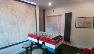 Fully equipped kitchen, lounge with log burner, separate dining room, map/planning room, 4 bathrooms either en suite or next to the bedroom, 4 showers and a bath. Bunks have comfortable full size mattresses but you need to bring all your own bedding, sleeping bag, sheet/duvet and pillows. There is a drying room. WiFi is available.